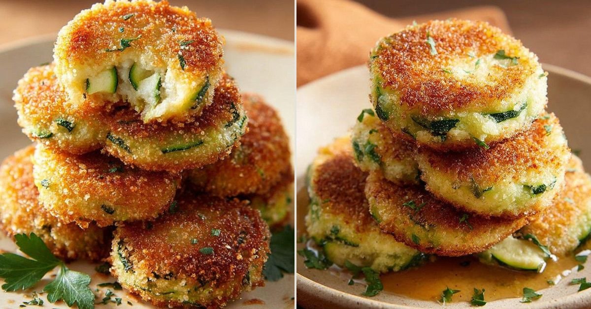 • Knusprige Zucchini Puffer mit goldener Farbe und zartem Inneren.